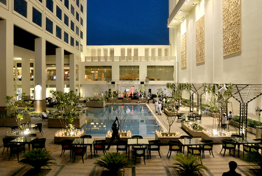 Nestled in the vibrant heart of the enchanting Pink City, Jaipur Marriott Hotel welcomes you to a harmonious blend of opulence and convenience, curated exclusively for the contemporary traveler. A luxury gateway to Jaipur, Rajasthan, India, our refined hotel suites are meticulously crafted, marrying contemporary comforts with timeless elegance. Stay at our hotel to enjoy easy access to nearby destinations like Jawahar Circle, the Pink City business district, City Palace and Hawa Mahal. With an array of modern amenities and an exquisite range of dining experiences, Jaipur Marriott Hotel is your ultimate haven, providing solace and rejuvenation after a day of immersive exploration in the captivating landscapes of Rajasthan, India.